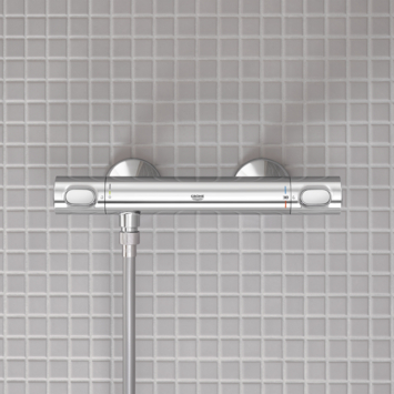 De kraan heeft een hoogwaardige StarLight® chroomlaag. Dit heldere chroom is krasbestendig en poets je snel schoon met een zachte doek. Veiligheid is ook geregeld: de SafeStop® begrenzing voorkomt dat de temperatuur onbedoeld hoger gaat dan 38°C. Met het Quickfix systeem installeer je deze douchemengkraan snel. Een perfecte balans tussen strak design en topfunctionaliteit voor jouw badkamer.