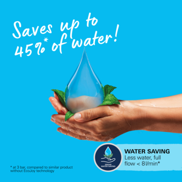 Het wisselen tussen de straalsoorten van de hoofddouche en handdouche gaat eenvoudig via de innovatieve GROHE SmartSwitch draaiknop aan de achterkant van de douchekop. GROHE DreamSpray zorgt ervoor dat het water gelijkmatig over alle sproeigaatjes wordt verdeeld voor een luxe douche-ervaring. De anti-kalk SpeedClean sproeigaatjes maken schoonmaken eenvoudig en houden de douches schoon en fris.