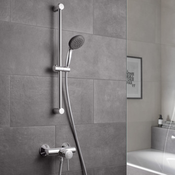 De GROHE Vitalio Start 2 doucheset bestaat uit: Grohe Vitalio Start I handdouche van 10 centimeter en 2 standen, 175cm doucheslang en een glijstang met verstelbare muursteunen.