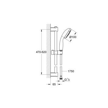 De GROHE Vitalio Start 3 doucheset bestaat uit: Grohe Vitalio Start III handdouche van 10 centimeter en 3 straalstanden, 175cm doucheslang en een glijstang met verstelbare muursteunen.