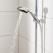 De beschermende siliconenring rond de handdouche voorkomt schade aan de douche, de douchebak of het bad als je de douche laat vallen.