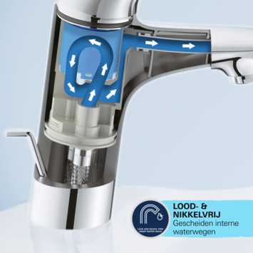 Deze kraan is niet alleen mooi, maar ook efficiënt. De temperatuurbegrenzer helpt energie te besparen, terwijl de GROHE Water Saving technologie het waterverbruik tot de helft vermindert. De duurzame GROHE Long-Life Finish beschermt tegen krassen, zodat de kraan er jarenlang als nieuw uitziet.