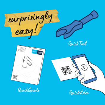 De montage is snel en eenvoudig dankzij de eengatsinstallatie en de meegeleverde GROHE QuickTool, QuickGuide en QuickVideo.