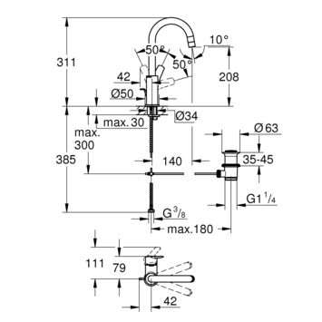 De geïntegreerde temperatuurbegrenzer helpt je energie te besparen, terwijl de Grohe WaterSaving technologie het waterverbruik beperkt tot 5,7 l/min, zonder dat je comfort verliest. Het Grohe QuickFix installatiesysteem maakt het installeren snel en eenvoudig. Met de meegeleverde 3-in-1 tool en flexibele aansluitslangen kun je de kraan in een mum van tijd monteren. De 3-in-1 tool is ook handig voor het vastdraaien van moeren, het aanspannen van slangen en het onderhouden van de beluchter.