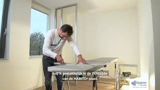Het HABITO® wandsysteem bestaat uit HABITO® (afm. lxbxd: 2.60x60x1.25 cm), de speciale HABITO® Schroeven, Gyproc Staanders, Gyproc Liggers en Gyproc Afdichtingsband. Het HABITO® wandsysteem is van nature al sterk geluidsisolerend, maar wil je de HABITO® wand maximaal geluidsisolerend maken, isoleer dan extra met Isover glaswol isolatieplaten (afm. lxb: 120x60 cm). Met Gyproc Wapeningsband verstevig je de naden en voorkom je scheuren. Gyproc Voegenvuller vult voegen snel en soepel waardoor naden netjes weggewerkt zijn. Met Gyproc Voegenfinisher maak je de naden echt onzichtbaar.