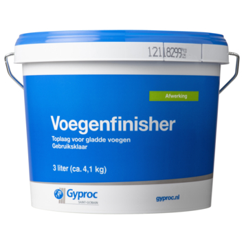 De Gyproc voegenfinisher wit 3 liter zorgt voor een super gladde voegafwerking. Het is gebruiksklaar. Het materiaal is zeer smeuïg, eenvoudig te verwerken en dankzij de fijne structuur zeer dun aan te brengen. Bovendien is voegenfinisher na uitharding heel gemakkelijk te schuren. Dit alles zorgt ervoor dat de voeg naadloos in het plaatoppervlak over gaat.