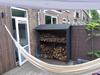 Mooie stevige haardhoutberging. Eenvoudig te monteren. Ook geschikt om afvalcontainers in op te slaan.