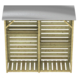 De berging is voorzien van twee planken die je naar wens aan één kant of aan beide kanten van het tussenschot kunt monteren. Het platte dak met zinken dakbedekking beschermt je haardhout tegen regen, zodat je altijd droog hout hebt wanneer je het nodig hebt. Ook zorgt de vloer ervoor dat het hout van de grond af ligt, wat de luchtcirculatie verbetert en voorkomt dat het hout vochtig wordt.