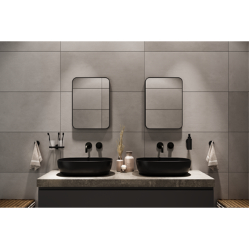 Deze rechthoekige spiegel van Haceka met afgeronde hoeken is een compacte oplossing voor moderne interieurs. Het mat zwarte frame van aluminium geeft een rustige, strakke uitstraling. Door het lichte materiaal is de spiegel eenvoudig op te hangen aan de muur. Met een formaat van 55 bij 40 cm is hij geschikt voor kleinere badkamers, toiletruimtes of slaapkamers. De afgeronde hoeken geven een zachtere look dan een standaard rechthoek. De diepte is 3 cm. Het aluminium is netjes afgewerkt en goed schoon te houden met glasreiniger of een mild schoonmaakmiddel. Montagemateriaal is niet inbegrepen.