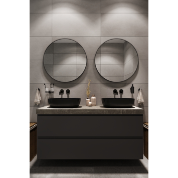 Geef je ruimte een moderne upgrade met deze ronde badkamerspiegel van Haceka. De spiegel heeft een doorsnede van 80 cm en een slank aluminium frame in mat zwart. Daardoor is hij zowel opvallend als minimalistisch. Perfect als blikvanger in je badkamer of in de hal. Het aluminium is stevig maar licht, en daardoor makkelijk in onderhoud. Even afnemen met glasreiniger of een mild schoonmaakmiddel en hij ziet er weer uit als nieuw. Door de kleur en vorm past deze badkamer spiegel bij veel verschillende stijlen. Montagemateriaal is niet inbegrepen.