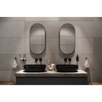 Met deze ovale spiegel uit de Deco-serie van Haceka voeg je een strak en functioneel element toe aan je badkamer of hal. De mat zwarte rand is subtiel, maar geeft toch karakter aan de ruimte. De aluminium omlijsting is stevig, maar licht genoeg om makkelijk op te hangen. De spiegel is 80 cm hoog, 40 cm breed en 3 cm diep. Dankzij de ovale vorm oogt hij zachter dan een rechthoekige badkamer spiegel, terwijl het formaat genoeg zicht geeft. Hij is eenvoudig te reinigen met een mild schoonmaakmiddel of wat glasreiniger. Een slimme keuze als je op zoek bent naar een spiegel die opvalt zonder te overheersen. Montagemateriaal is niet inbegrepen.