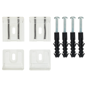 Bevestig jouw spiegel eenvoudig met de vier traditionele spiegelklemmen van Haceka. Deze klemmen zijn geschikt voor spiegels met een dikte van 4 tot 6 mm en kunnen samen een gewicht tot 12 kg dragen. Gemaakt van transparant acryl, zijn ze aan de voorzijde van de spiegel wel een beetje zichtbaar, maar vallen ze door de doorzichtige kleur nauwelijks op. Dankzij de simpele montage met schroeven is het ophangen van je spiegel een fluitje van een cent. Zorg voor een betrouwbare en elegante ophangoplossing met deze praktische klemmen.