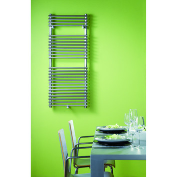 De Haceka designradiator Merzouga RVS 1200 mm x 500 mm is een designradiator gemaakt van 100% RVS. Het ontwerp is strak en verfijnd. De ronde verticale buizen bieden een stevig houvast aan de ronde horizontale buizen. Het lijnenspel is fraai en houdt rekening met het praktisch nut van deze radiator: als bijverwarming of voor het verwarmen of drogen van je handdoeken. De afmetingen zijn 120 centimeter bij 50 centimeter. De radiator heeft een capaciteit van 435 Watt.