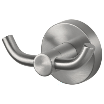 Deze dubbele haak is een praktische oplossing voor je badkamer, toilet of keuken. Hang er eenvoudig een handdoek, badjas of spons aan, of gebruik hem als jashaak in de garderobe. De haak heeft een lengte van 9 cm en een muurafstand van 5 cm, waardoor hij compact en handig in gebruik is. Met zijn RVS geborstelde look past hij in vrijwel iedere moderne inrichting. De montage gaat via een rond muurplaatje van 5,3 cm dat blind wordt bevestigd, zodat de schroeven niet zichtbaar zijn. Alle montagematerialen worden meegeleverd. Een veelzijdige accessoire die je dagelijks gemak geeft.