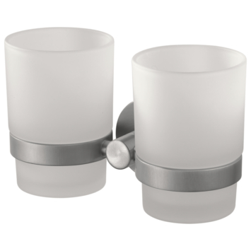 Met deze dubbele bekerhouder heb je altijd genoeg plek voor je badkamerbenodigdheden. Handig bij een dubbele wasbak of als je een glas wilt gebruiken voor drinken en het andere voor tandenborstels. De matglazen bekers worden stevig vastgehouden door de RVS-look houder. Met een lengte van 16 cm, hoogte van 9 cm en een muurafstand van 7,5 cm neemt hij weinig ruimte in beslag, terwijl hij toch praktisch is in gebruik. De montage gaat met een rond muurplaatje en meegeleverde schroeven. Zo combineer je stijl en gemak in je badkamer.