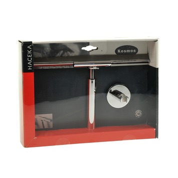 De Haceka Kosmos wisserset met ophangknop chroom is ideaal voor het schoonmaken van alle gladde oppervlakten in jouw badkamer. Denk hierbij aan jouw tegelwand, douchewand of spiegel. Bij het droogtrekken na gebruik voorkom je kalkaanslag. Door het lichtgekleurde rubber krijg je geen zwarte strepen bij gebruik. Na gebruik hang je de wisser gemakkelijk terug aan de meegeleverde ophangset.