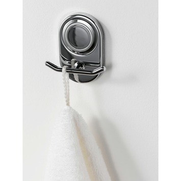 Handige, dubbele haak die werkelijk overal in huis te gebruiken is. Van toilet tot kast of badkamer. De haak is licht gebogen: daardoor blijft alles er netjes aan hangen.