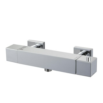 Haceka Mezzo chroom thermostatische douchekraan. Deze strakke Kosmos kraan heeft een douchethermostaat met veiligheidspal. Een echte aanrader voor gezinnen met kleine kinderen. U maakt deze kraan geheel in stijl compleet met de Kosmos doucheglijstangset: met een mooie, ronde douchekop. Vindt u de Mezzo serie ook zo mooi. Combineer dan alle producten van Mezzo. De Mezzo lijn bestaat uit een collectie kranen, douchesets en alle mogelijke accessoires.