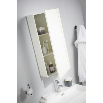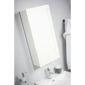 Haceka Mix and match paneeldeur 40x80. Sfeervol klassiek deurtje dat past bij het kastje van 40x80 cm. Belangrijk: de scharnieren krijgt u bij het kastje. U heeft de keuze uit een deurtje met een vlakke achterplaat of met een spiegel omgeven door een wit kader. De deur is greeploos en u kunt hem naar links of rechts laten draaien. Wilt u dat het deurtje extra zacht sluit? Dan kunt u er softclose scharnieren los bijnemen.