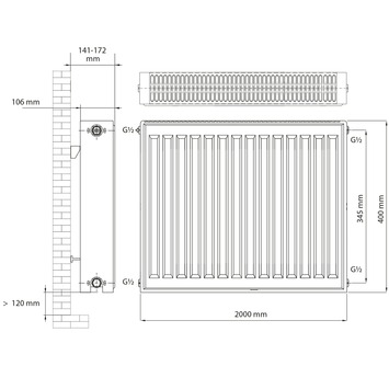 Haceka paneelradiator Imago Duo 400 mm x 2000 mm68.70