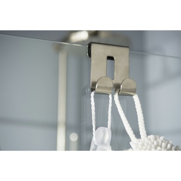 Haceka Selection RVS dubbele haak om aan de douchewand te hangen. Deze dubbele haak hang je heel eenvoudig aan je douchedeur: aan de binnen- of buitenkant, wat je het handigst vindt. Je kunt de haak dus niet alleen gebruiken voor een handdoek of badjas, maar ook voor spulletjes die je bij de hand wilt hebben tijdens het douchen, zoals een badborstel of puff. Je kunt bovendien kiezen voor een korte of lange variant. Wil je een haak die lager hangt? Dan is de lange haak ideaal! Wil je ook badkameraccessoires in dezelfde stijl? Kijk dan bij IXI, deze serie sluit naadloos aan bij de Selection inloopdouche accessoires