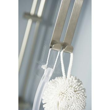 Haceka Selection RVS dubbele lange haak om aan de douchewand te hangen. Deze dubbele haak hang je heel eenvoudig aan je douchedeur: aan de binnen- of buitenkant, wat je het handigst vindt. Je kunt de haak dus niet alleen gebruiken voor een handdoek of badjas, maar ook voor spulletjes die je bij de hand wilt hebben tijdens het douchen, zoals een badborstel of puff. Je kunt bovendien kiezen voor een korte of lange variant. Wil je een haak die lager hangt? Dan is de lange haak ideaal! Wil je ook badkameraccessoires in dezelfde stijl? Kijk dan bij IXI, deze serie sluit naadloos aan bij de Selection inloopdouche accessoires