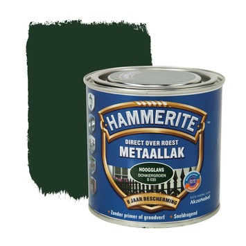 Hammerite Direct over Roest metaallak hoogglans donkergroen 250 ml is een decoratieve, roestwerende metaallak voor alle soorten (roestig en beschadigd) metaal. Je kunt het zonder primer of grondverf direct over roest aanbrengen. Je hoeft dus niet urenlang te schuren of te ontroesten want Hammerite metaallak hecht uitstekend. Het stopt het roestproces en geeft maar liefst 8 jaar roestbescherming. Hammerite Direct over Roest metaallak is waterafstotend en weerbestendig waardoor je het goed kunt gebruiken worden voor de bescherming van allerlei metalen objecten buiten. Hammerite hoogglans metaallak is in diverse kleuren leverbaar en is UV-bestendig waardoor het metaal langdurig verfraait.