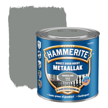 Hammerite Direct over Roest metaallak hoogglans grijs 250 ml is een decoratieve, roestwerende metaallak voor alle soorten (roestig en beschadigd) metaal. Je kunt het zonder primer of grondverf direct over roest aanbrengen. Je hoeft dus niet urenlang te schuren of te ontroesten want Hammerite metaallak hecht uitstekend. Het stopt het roestproces en geeft maar liefst 8 jaar roestbescherming. Hammerite Direct over Roest metaallak is waterafstotend en weerbestendig waardoor je het goed kunt gebruiken worden voor de bescherming van allerlei metalen objecten buiten. Hammerite hoogglans metaallak is in diverse kleuren leverbaar en is UV-bestendig waardoor het metaal langdurig verfraait.