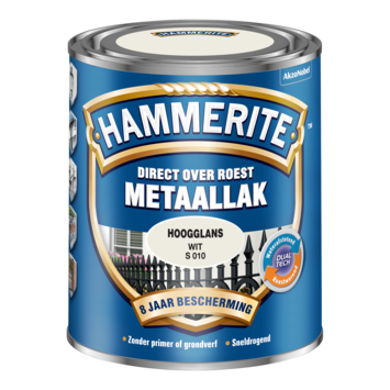Hammerite Direct over Roest metaallak hoogglans wit 750 ml is een decoratieve, hoogglanzende, roestwerende metaallak voor alle soorten (roestig en beschadigd) metaal. Je kunt het zonder primer of grondverf direct over roest aanbrengen. Je hoeft dus niet urenlang te schuren of te ontroesten want Hammerite Direct over Roest hecht uitstekend. Het stopt het roestproces en geeft maar liefst 8 jaar roestbescherming. Hammerite Direct over Roest is waterafstotend en weerbestendig waardoor je het goed kunt gebruiken worden voor de bescherming van allerlei metalen objecten buiten. Hammerite Direct over Roest is in diverse kleuren leverbaar en is UV-bestendig waardoor het metaal langdurig verfraait.