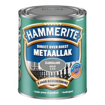 Hammerite Direct over Roest metaallak zijdeglans grijs 750 ml is een decoratieve, roestwerende metaallak voor alle soorten (roestig en beschadigd) metaal. Je kunt het zonder primer of grondverf direct over roest aanbrengen. Je hoeft dus niet urenlang te schuren of te ontroesten want Hammerite metaallak hecht uitstekend. Het stopt het roestproces en geeft maar liefst 8 jaar roestbescherming. Hammerite metaallak is waterafstotend en weerbestendig waardoor je het goed kunt gebruiken worden voor de bescherming van allerlei metalen objecten buiten. Hammerite metaallak is in diverse kleuren leverbaar en is UV-bestendig waardoor het metaal langdurig verfraait.