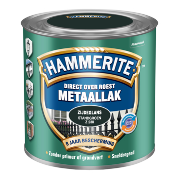 Hammerite Direct over Roest metaallak zijdeglans standgroen 250 ml is een decoratieve, roestwerende metaallak voor alle soorten (roestig en beschadigd) metaal. Je kunt het zonder primer of grondverf direct over roest aanbrengen. Je hoeft dus niet urenlang te schuren of te ontroesten want Hammerite metaallak hecht uitstekend. Het stopt het roestproces en geeft maar liefst 8 jaar roestbescherming. Hammerite metaallak is waterafstotend en weerbestendig waardoor je het goed kunt gebruiken worden voor de bescherming van allerlei metalen objecten buiten. Hammerite metaallak is in diverse kleuren leverbaar en is UV-bestendig waardoor het metaal langdurig verfraait.