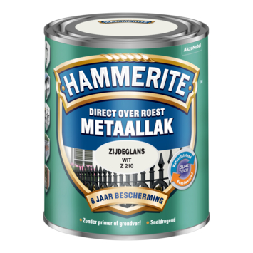 Hammerite Direct over Roest metaallak zijdeglans wit 750 ml is een decoratieve, roestwerende metaallak voor alle soorten (roestig en beschadigd) metaal. Je kunt het zonder primer of grondverf direct over roest aanbrengen. Je hoeft dus niet urenlang te schuren of te ontroesten want Hammerite metaallak hecht uitstekend. Het stopt het roestproces en geeft maar liefst 8 jaar roestbescherming. Hammerite metaallak is waterafstotend en weerbestendig waardoor je het goed kunt gebruiken worden voor de bescherming van allerlei metalen objecten buiten. Hammerite metaallak is in diverse kleuren leverbaar en is UV-bestendig waardoor het metaal langdurig verfraait.