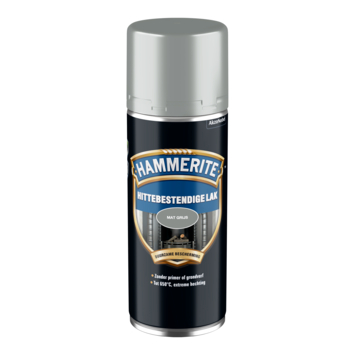 Hammerite hittebestendige lak mat grijs 400 ml is een hittebestendige lak voor metalen voorwerpen die extreem verhit worden. Het is uitstekend bestand tegen extreem hoge temperaturen, tot wel 600°. Hammerite hittebestendige lak biedt daarom een duurzame bescherming aan metalen voorwerpen binnen zoals bijvoorbeeld kachels, open haarden of barbecues. Het wordt geleverd in een handige spuitbus waardoor je eenvoudig moeilijk bereikbare plaatsen kunt behandelen. Hammerite hittebestendige lak is snel droog waardoor je de tweede laag al na 10 minuten kunt aanbrengen.
