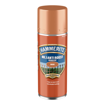 Hammerite Nr. 1 anti-roest grondverf spuitlak beige 400 ml is een roestwerende primer en grondverf in één voor metaal. Hammerite anti-roest is de meest effectieve, beschermende grondlaag voor onbehandeld en verroest metaal, want het stopt het roestproces en is roestwerend. Hammerite anti-roest hecht uitstekend en je kunt het zowel binnen als buiten toepassen. Door de handige spuitbus behandel je eenvoudig moeilijk bereikbare plaatsen. Hammerite anti-roest is niet geschikt om te gebruiken op non-ferro metalen zoals zink, aluminium en gegalvaniseerd metaal.