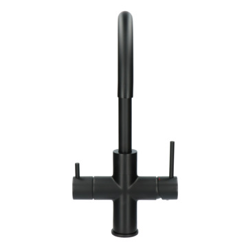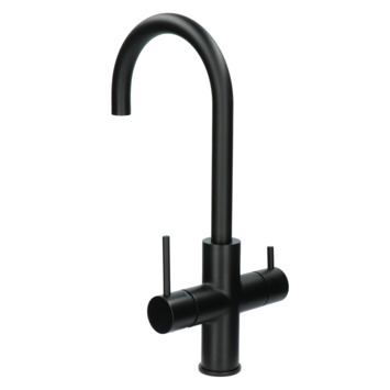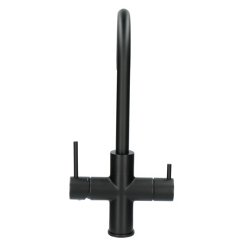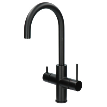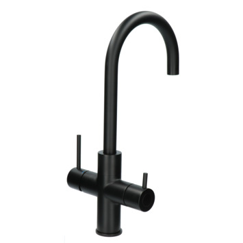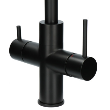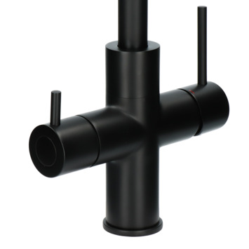 Nooit meer wachten tot het water kookt met de Handson Ace 3-in-1 kokendwaterkraan Zwart incl. 4 liter boiler! Deze kraan is niet alleen met zijn robuuste ontwerp en mat zwarte afwerking een verrijking in elk landelijk of industrieel interieur, ook zorgt deze kraan voor veel gemak en comfort in de keuken. Uit één en dezelfde kraan stroomt naar keuze koud, kraanwarm of 100°C kokend water. De rechter éénhendelbediening zorgt voor een eenvoudigere afstelling van de gewenste temperatuur tussen koud en kraanwarm. De keramische schijven in de hendels zorgen daarbij voor een soepele en nauwkeurige draaiing en vergen bovendien nauwelijks onderhoud. Met de linkerhendel is kokend water direct beschikbaar uit de 3-in-1 kokendwaterkraan. Een kop thee zetten is in een handomdraai gebeurd! Ook een grotere hoeveelheid kokend water is mogelijk door de meegeleverde roestvrijstalen boiler met een inhoud van maar liefst 4 liter. Dat is praktisch bij bijvoorbeeld het koken. Een grote pan vullen wordt extra eenvoudig door de hoge uitloop op 29 cm. Bovendien is de kraan 360° draaibaar wat geeft veel ruimte in de gootsteen geeft.