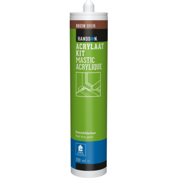 Handson acrylaatkit bruin 290 ml is een overschilderbare kit. De kit kan gebruikt worden voor het afdichten van beperkte bewegingsvoegen.