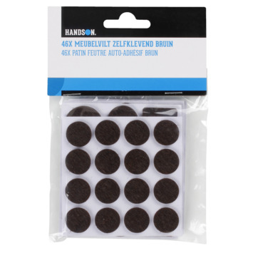 Het HANDSON anti krasvilt wordt gebruikt voor onder het meubilair en beschermt de vloer tegen krassen en andere beschadigingen door het verschuiven van het meubelstuk. Met het HANDSON meubelvilt bruin wordt dat probleem verholpen. Het bescherm viltjes zijn voorzien van een zelfklevende laag zodat je het direct kunt plakken. De set bestaat uit een assortiment van 46 stuks in de kleur bruin.