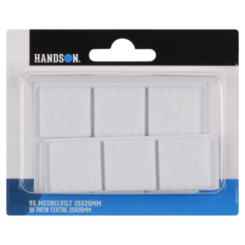 Het HANDSON anti krasvilt wordt gebruikt voor onder het meubilair en beschermt de vloer tegen krassen en andere beschadigingen door het verschuiven van het meubelstuk. Met het HANDSON meubelvilt wit wordt dat probleem verholpen. Het vilt is reeds voorzien van een zelfklevende laag zodat je het direct kunt plakken. De afmeting is 25x25 mm en in de verpakking zitten 9 stuks in de kleur wit.