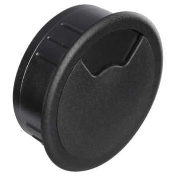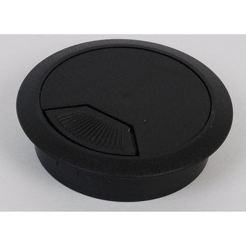 Een kabeldoorvoerdoos is te gebruiken om kabels door het bureau weg te werken. De doos heeft een tweedelige afsluiting en een diameter van 60 millimeter.