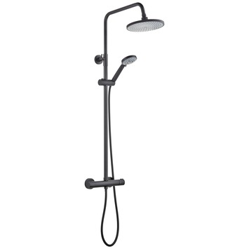 Het Handson douchesysteem Delphin zwart bestaat uit een hoofddouche met een diameter van 22 cm en een handdouche met 3 straalstanden, evenals een douchestang en doucheslang. Dit douchesysteem bevat daarnaast ook een thermostatische douchekraan met keramische schijven. Het systeem is eenvoudig te bevestigen dankzij het meegeleverde bevestigingsmateriaal.