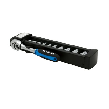 Deze HANDSON-doppenset bevat 10 dopsleutels van 1/4", oftewel: met 6,3mm-verbinding. De dopsleutels hebben sleutelwijdtes van 5mm tot 14mm. De dopsleutelset bevat tevens een ratelsleutel van hoogwaardig chroom-vanadiumstaal die voorkomt dat de dopsleutel valt tijdens het los- of vastschroeven van moeren en bouten. Door de handige knop zijn de dopsleutels bovendien gemakkelijk te verwisselen. De doppenset met 10 dopsleutels van 1/4inch en verschillende afmetingen van 5mm tot 14mm wordt geleverd met handige cassette waarin u de dopsleutels uit de doppenset goed en overzichtelijk opbergt.