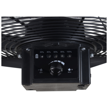 Koel jezelf af met deze draadloze tafelventilator Athene. De ventilator uit zwart metaal koelt probleemloos 5u zonder opladen en is nadien gemakkelijk via USB op te laden. De ventilator heeft een diameter van 40 cm, heeft een vermogen van 43 Watt is kantelbaar en de snelheid is traploos te regelen.