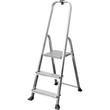 De Handson huishoudtrap aluminium 3 treden is een erg stevige en praktische huishoudtrap. De trap is gemaakt van aluminium waardoor het gewicht slechts 3,2 kg is. De opberglengte is 130 cm en de stahoogte is 60 cm. Deze huishoudtrap heeft ook nog eens fijne brede treden met antislip profiel zodat je veilig en stabiel kunt staan. Het plateau kan stevig worden vastgeklemd zodat de trap nooit onbedoeld kan inklappen. Kortom de Handson huishoudtrap is een veilige en praktische huishoudtrap.