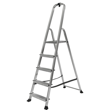 De Handson huishoudtrap aluminium 5 treden is een erg stevige en praktische huishoudtrap. De trap is gemaakt van aluminium waardoor het gewicht slechts 6 kg is. De opberglengte is 176,5 cm en de stahoogte is 105 cm. Deze huishoudtrap heeft ook nog eens fijne brede treden met antislip profiel zodat je veilig en stabiel kunt staan. Het plateau kan stevig worden vastgeklemd zodat de trap nooit onbedoeld kan inklappen. Kortom de Handson huishoudtrap is een veilige en praktische huishoudtrap.