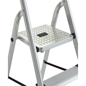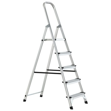 De Handson huishoudtrap aluminium 5 treden is een erg stevige en praktische huishoudtrap. De trap is gemaakt van aluminium waardoor het gewicht slechts 6 kg is. De opberglengte is 176,5 cm en de stahoogte is 105 cm. Deze huishoudtrap heeft ook nog eens fijne brede treden met antislip profiel zodat je veilig en stabiel kunt staan. Het plateau kan stevig worden vastgeklemd zodat de trap nooit onbedoeld kan inklappen. Kortom de Handson huishoudtrap is een veilige en praktische huishoudtrap.