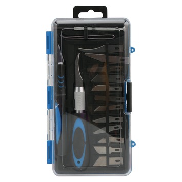 Dit Handson messenset voor precisiewerk is onmisbaar wanneer u nauwkeurig te werk moet gaan. De messenset bestaat uit 14 delen. De set bevat 2 meshouders en 12 verschillende mesjes. U gebruikt de messenset van Handson voor precisiewerk, zoals het snijden van diverse materialen. De messen in de messenset zijn bedoeld om onder meer leer, papier, rubber, karton, kurk, hout en textiel te snijden. De messenset van Handson voor precisiewerk is dan ook ideaal voor allerlei knutselwerk.