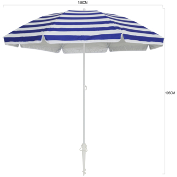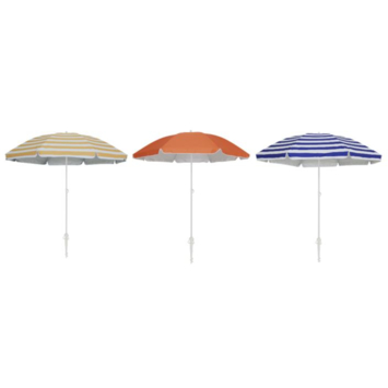 Op zoek naar stijlvolle en praktische strandparasols? Deze parasols hebben een diameter van 1,6 meter en bieden voldoende schaduw voor jou en je vrienden. De vrolijke kleurencombinaties van arabesque en wit, blauw en wit, en okergeel en wit maken deze parasol een echte eyecatcher. Gemaakt van stevig metaal en polyester, ga je er zeker lang plezier van hebben. Het handmatige uitklapmechanisme maakt het eenvoudig om de parasol snel op te zetten en weer in te klappen. Met een hoogte van 185 cm en een breedte van 160 cm passen deze parasol perfect in je stranduitrusting. Til je stranddag naar een hoger niveau met deze kleurrijke en praktische parasols.