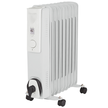 De Handson oliegevulde radiator 2000 watt met 9 elementen kan met een vermogen van 2000 watt snel een ruimte opwarmen. Met de drie standen bepaal je zelf de hoeveelheid warmte. Deze radiator is gemaakt van wit metaal en is 55 centimeter hoog, 24 centimeter breed en 40,5 centimeter diep. De oliegevulde radiator beschikt over een oververhittingsbeveiliging en omvalbeveiliging. Een fijn verwarmde kamer met deze Handson oliegevulde radiator 2000 watt met 9 elementen.