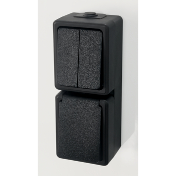 Handson opbouw combinatie stopcontact/serie schakelaar spatwaterdicht zwart