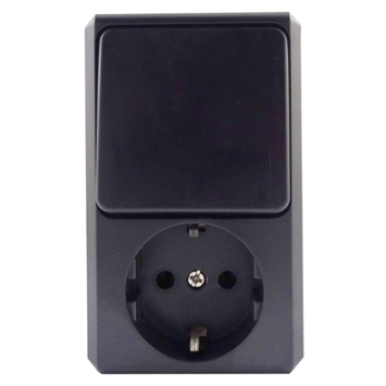 Handson Opbouw Geaard Stopcontact met Schakelaar Zwart